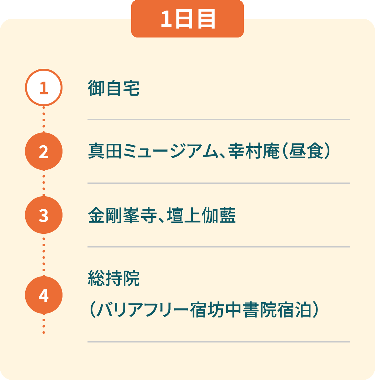 高野山では珍しいバリアフリーの宿坊に泊まる一泊二日の旅。精進料理や写経など宿坊ならではの体験ができます。奥之院も散策できます。